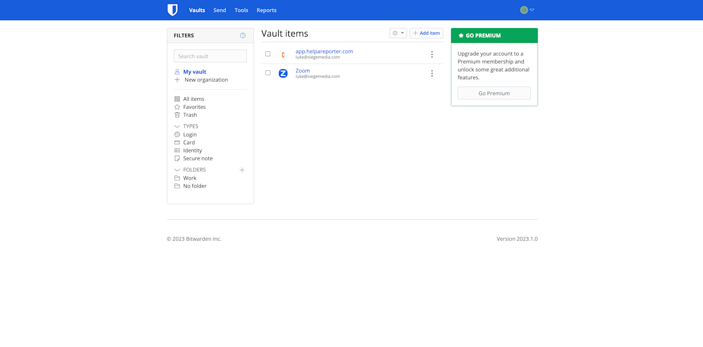 As you can see, Bitwarden goes the extra mile with its reporting. Unlike LastPass, the platform reports on which of my passwords have been exposed in a data breach, which unsecured websites I have saved, and which sites don't have two-step authentication enabled.