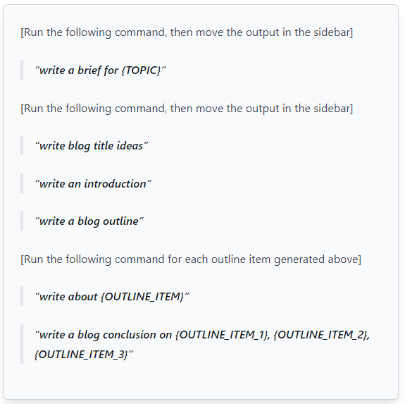 As you create commands and workflows on Jasper, you can save them as recipes (pre-built workflows) for a repeatable process. And if you struggle to come up with the right prompts, there's an avalanche of recipes available in the Jasper community that you can use until you develop yours. Here's an example.